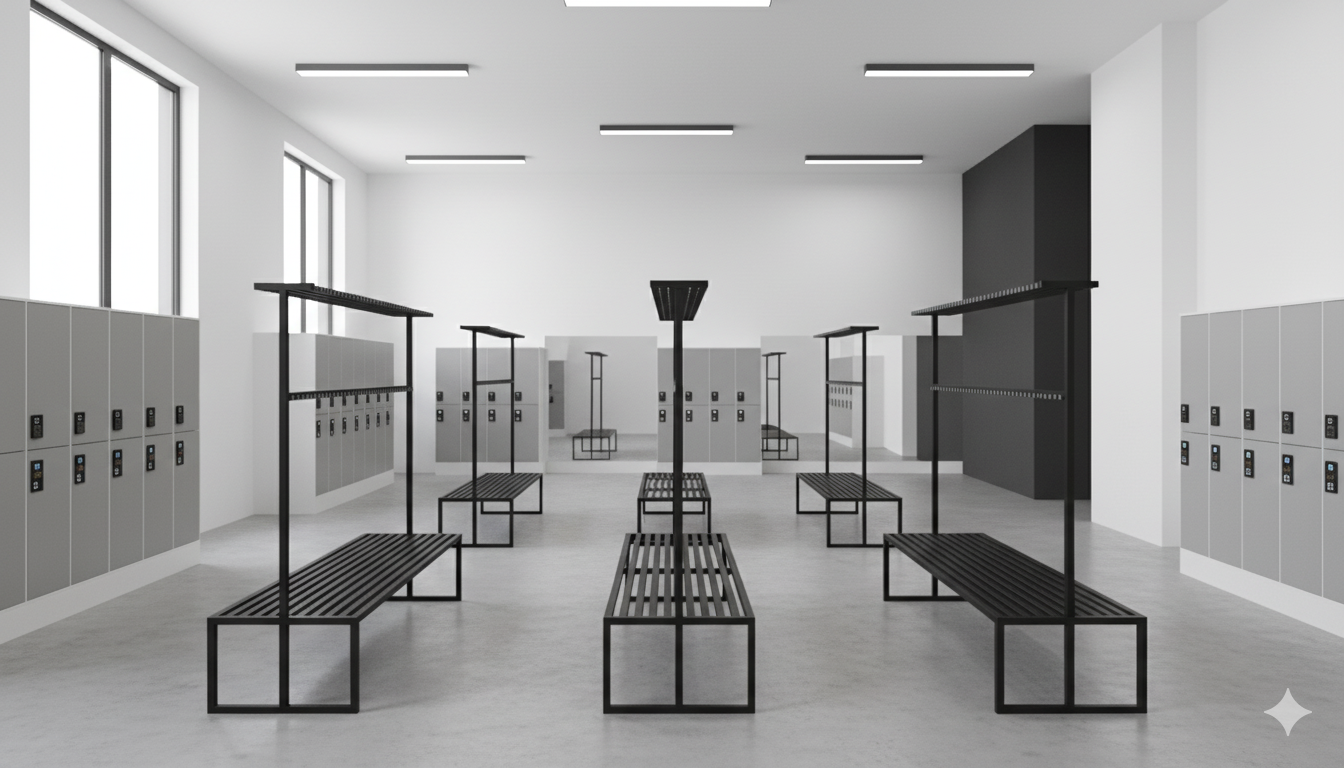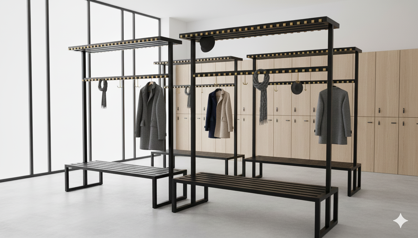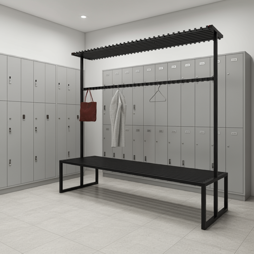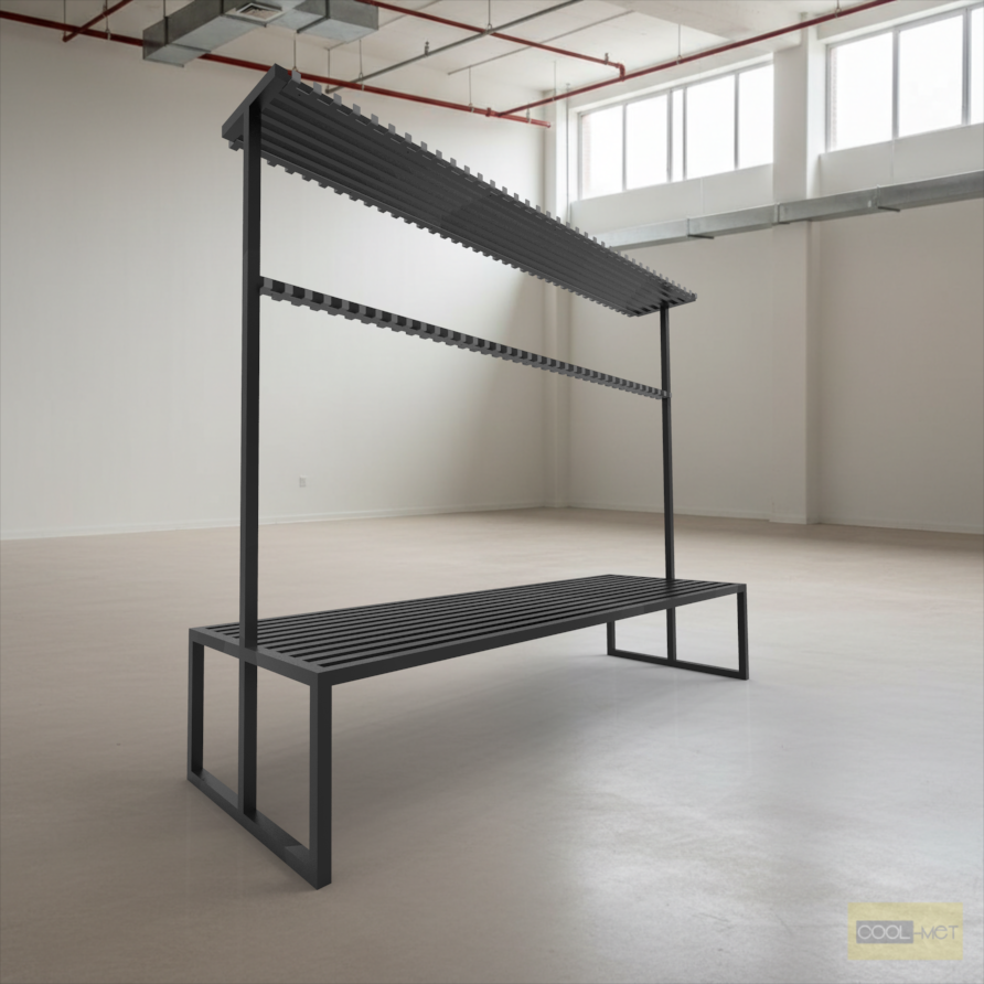 Ta solidna i funkcjonalna ławka metalowa z wieszakami to idealne rozwiązanie do szatni, przebieralni, korytarzy czy pomieszczeń socjalnych. Łączy wygodne miejsce do siedzenia z praktycznym systemem przechowywania, pomagając utrzymać porządek w każdej przestrzeni.