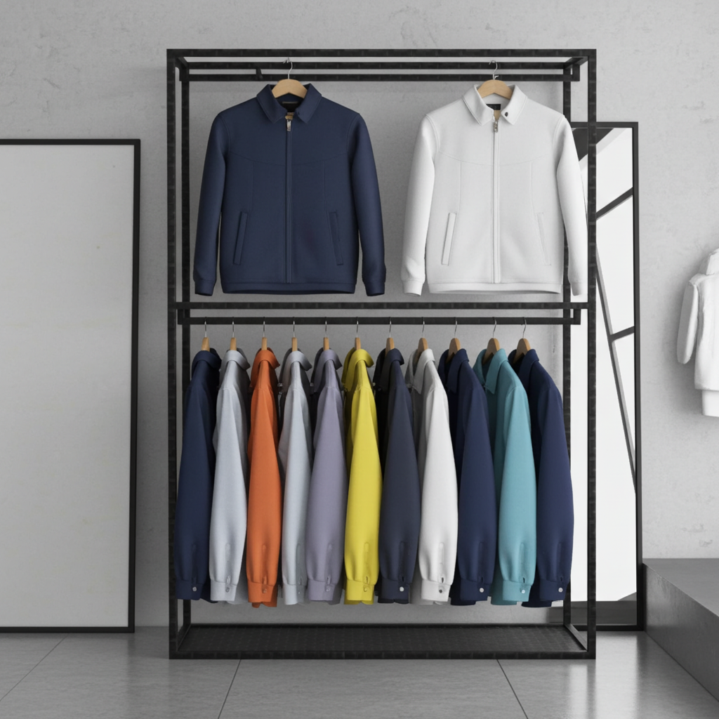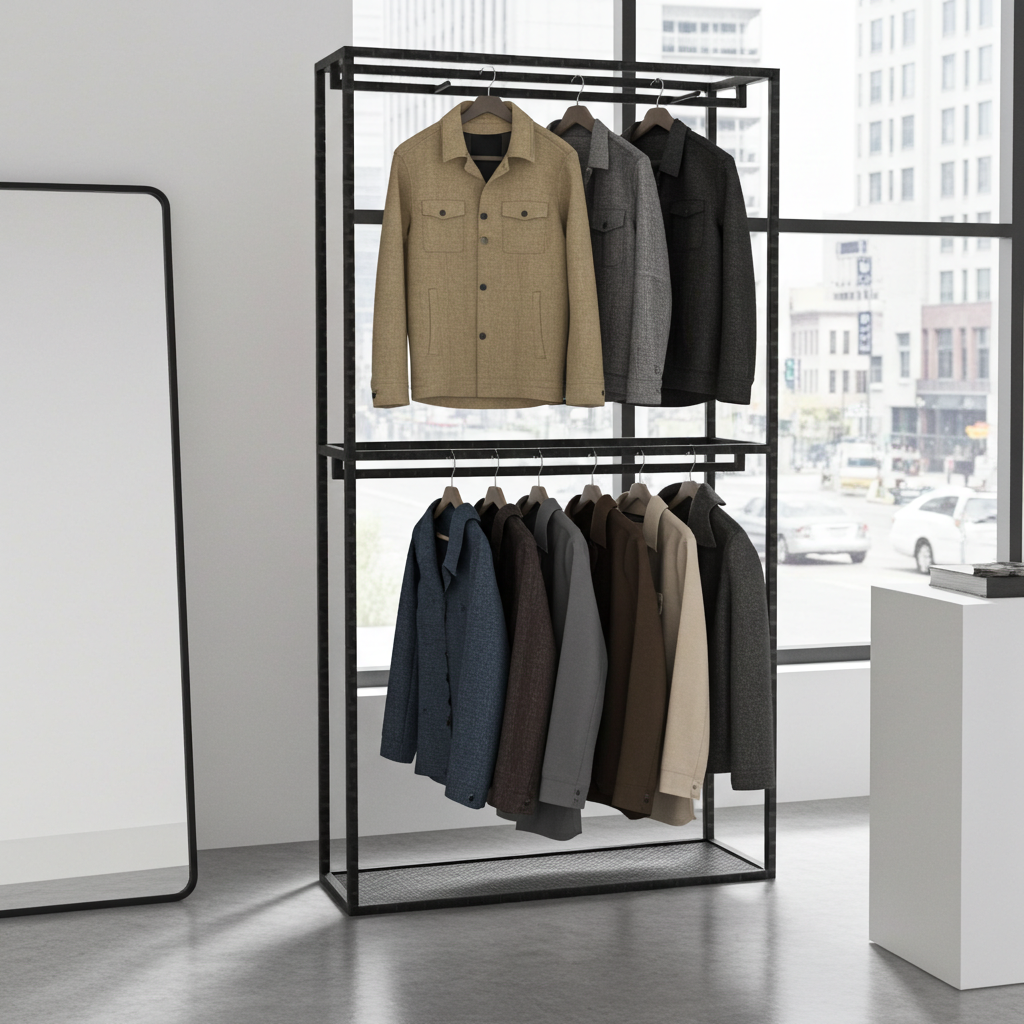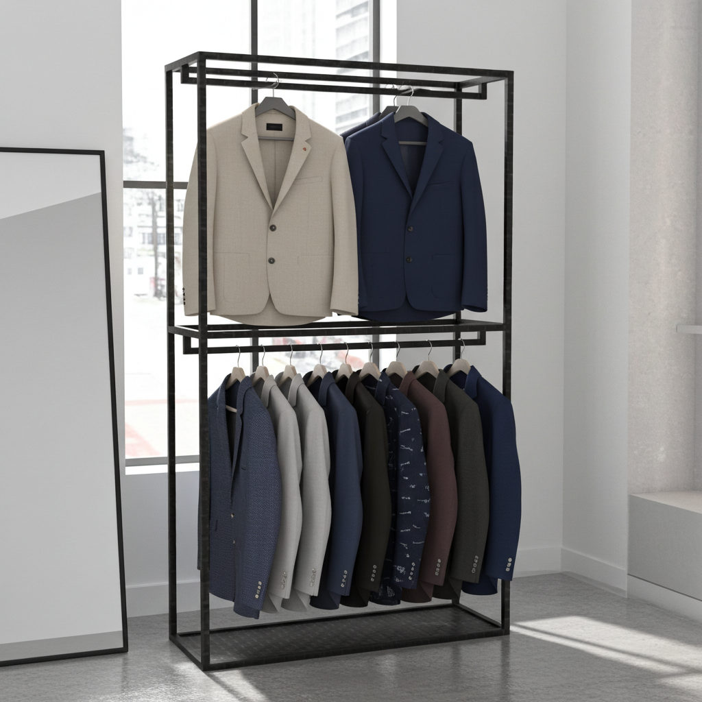 Dwa rzędy do wieszania ubrań (na wysokościach 230 cm i ok. 115 cm) maksymalizują pojemność, oszczędzając cenną przestrzeń. Idealny do porządkowania odzieży wierzchniej, garniturów i uniformów. Lakierowanie proszkowe chroni konstrukcję przed zarysowaniami i korozją.