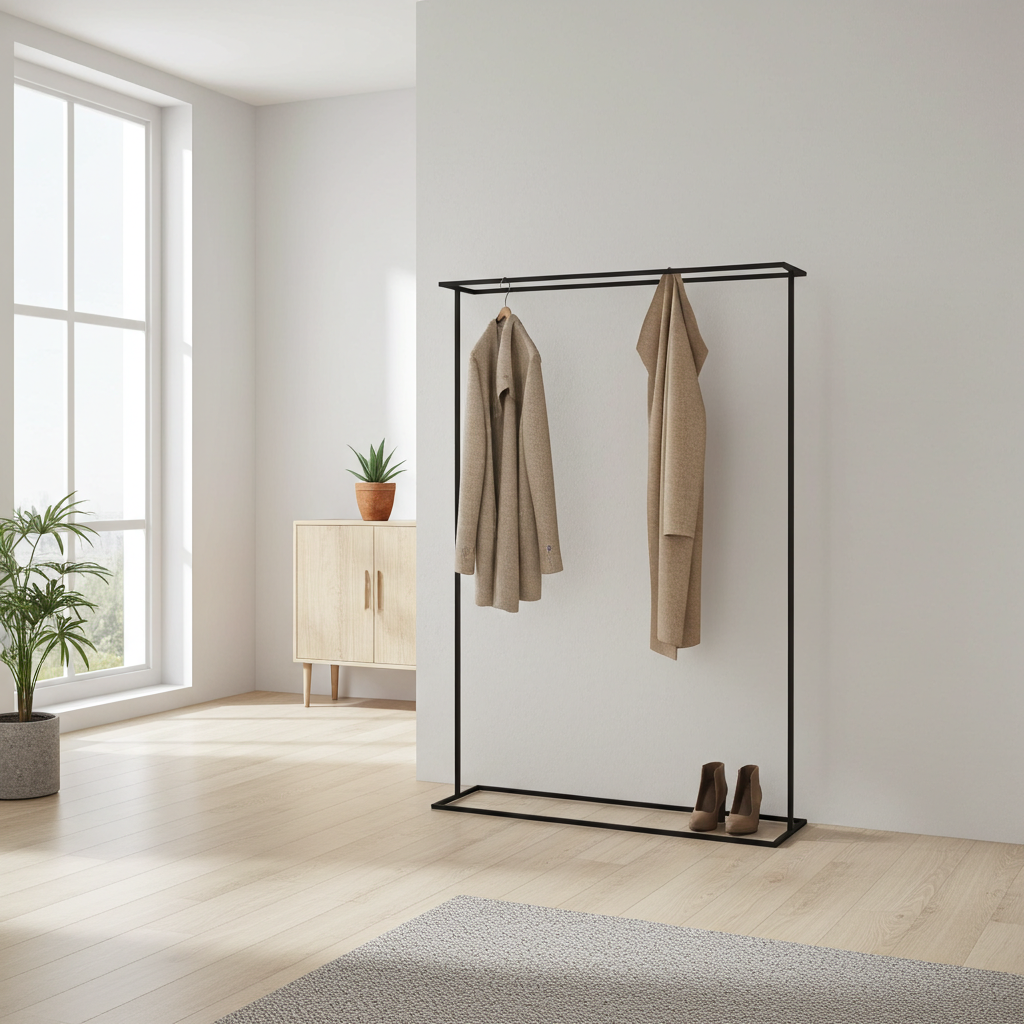 Wprowadź harmonię i porządek do swojej przestrzeni z wieszakiem wolnostojącym "I" – arcydziełem minimalistycznego designu i niezawodnej funkcjonalności. Stworzony z myślą o nowoczesnych wnętrzach, od butików i showroomów, po eleganckie garderoby i sypialnie, wieszak "I" to synonim stylu i praktyczności.